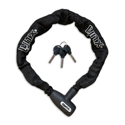 Das Lynx Cityline L Kettenschloss verfügt über eine 85 cm lange, hochwertig gehärtete Stahlkette mit 8 mm dicken quadratischen Gliedern. Dieses schwarze Sicherheitsschloss ist wetterbeständig und mit dem Auto-Klick-Verriegelungssystem* ausgestattet. Die Kettenglieder sind mit einer weichen Nylonhülle ummantelt, um Beschädigungen am Fahrrad oder Moped zu verhindern. Das Kettenschloss wird standardmäßig mit 3 Schlüsseln geliefert. Mit Schiebekarte.