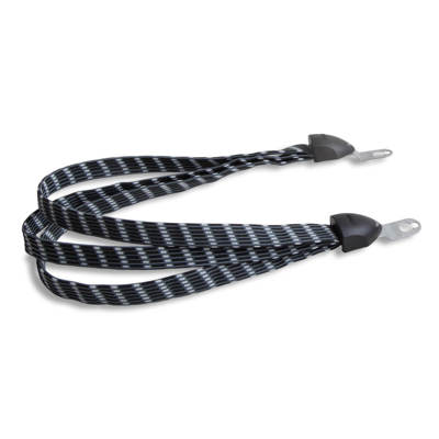 Schwarz/blaue Spanngurte 26/28 Zoll von LYNX mit Aluminium-Zink-Legierung Platte. Diese Spanngurte sind einfach am Gepäckträger zu montieren und nützlich, um Sachen zu tragen. Diese Spanngurte sind in einer ordentlichen Aufhängekarte verpackt.